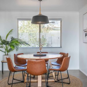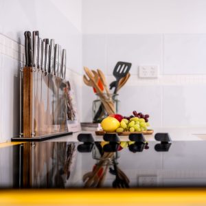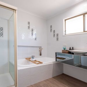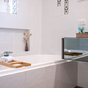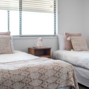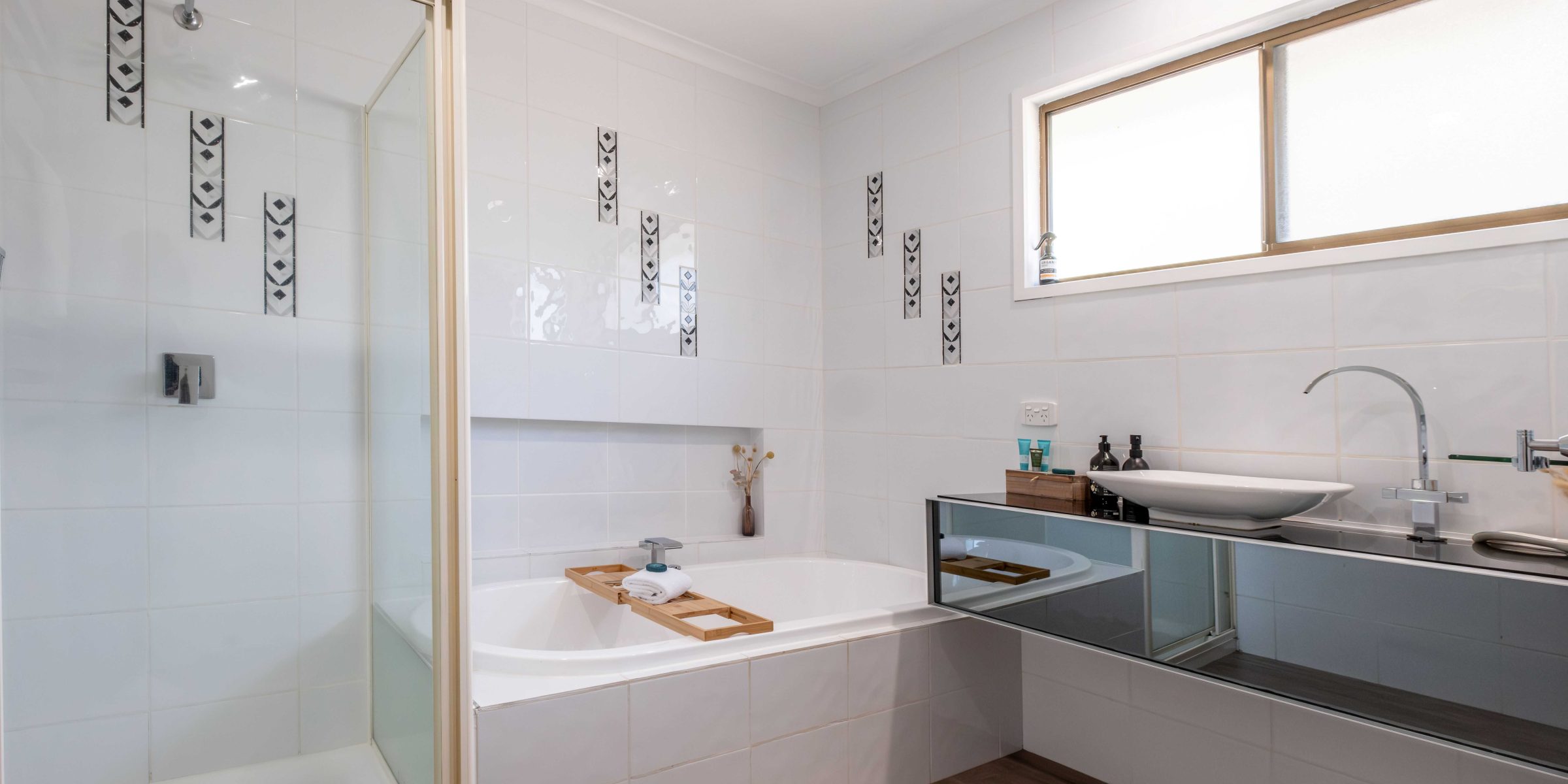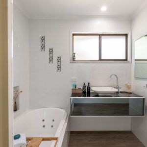 Comprised with three spacious bedrooms all with wardrobe storage and views of the water. The master king bedroom has sliding door access to the deck area. The twin single room includes children’s toys and entertainment in the wardrobe. A portacot and high chair are available upon request.