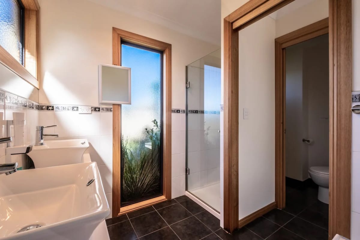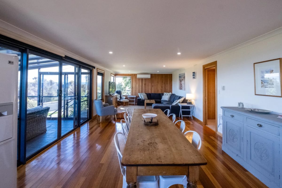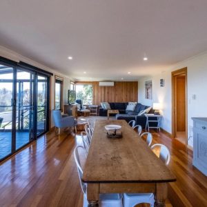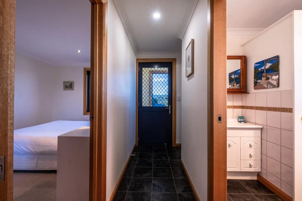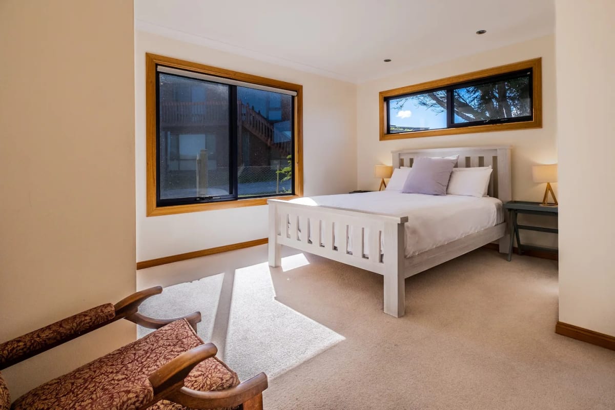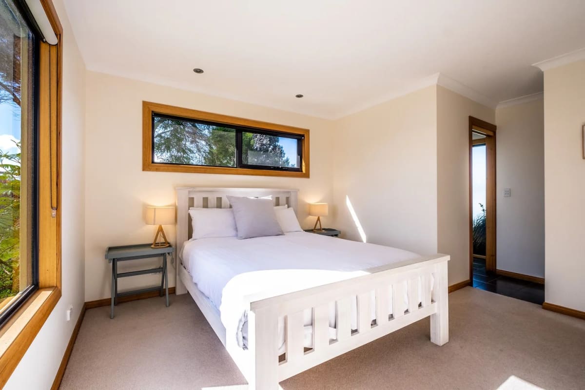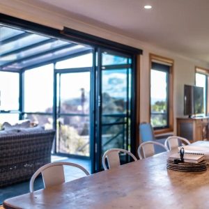The property is beautifully appointed with 2 master bedrooms, both with queen beds and 2 bathrooms – one of which is the ensuite off the master room. You can sit in the lounge room, kitchen or sunroom with uninterrupted views of the open ocean watching whales, dolphins and other marine life throughout the seasons. The property has many beach walks only a couple of minutes from the doorstep. The Freycinet National Park is only a 10-minute drive away which can lead you to the world-renowned Wineglass Bay.