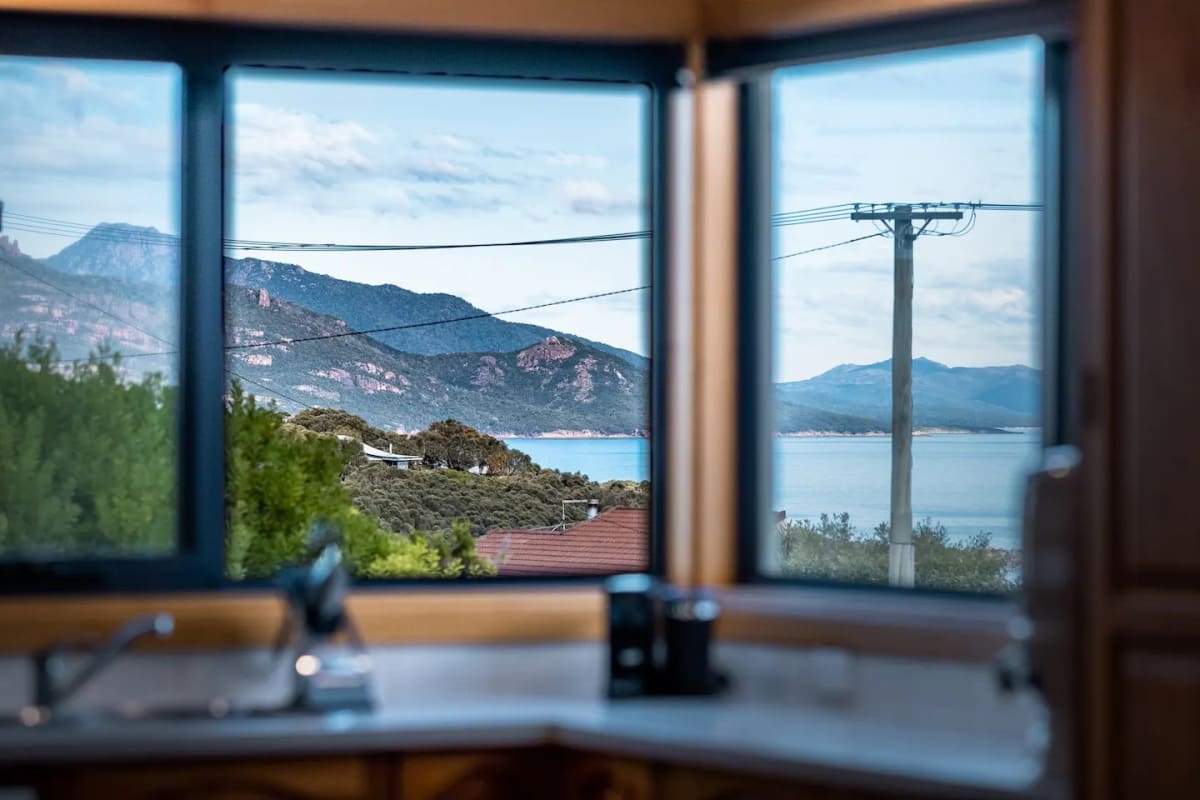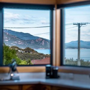 Blue Waves – Freycinet is an amazing property with sweeping 180-degree views of Great Oyster Bay, nestled across the road from the beach. Across the road is a walking track taking you directly to the beautiful Sand Piper beach, which is fantastic for swimming with the family, fishing or watching the famous sunsets.