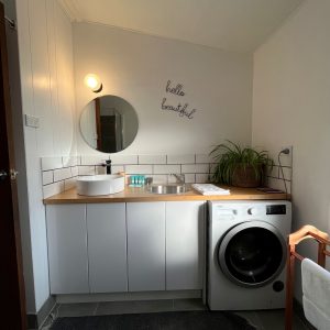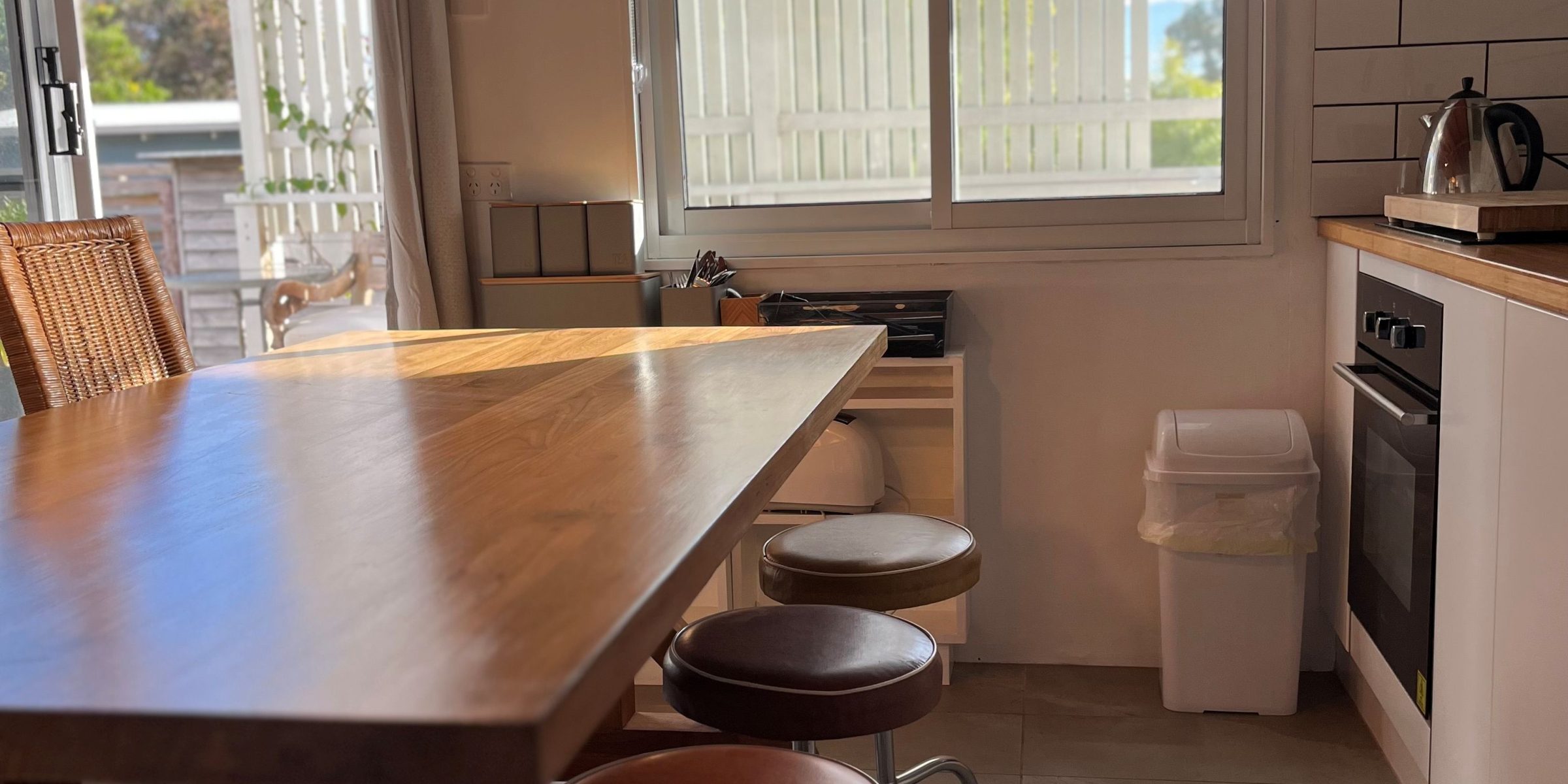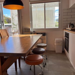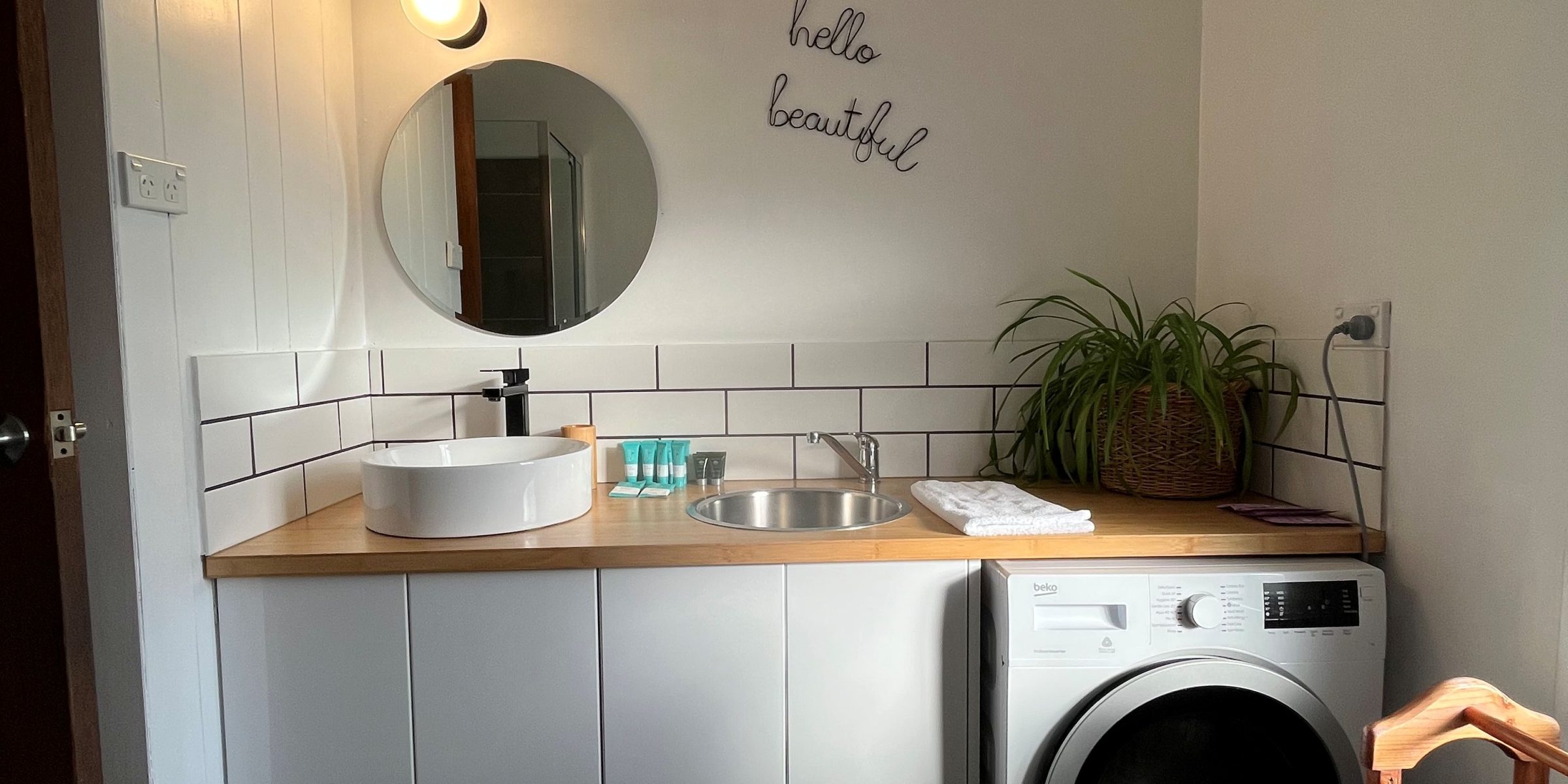The modern kitchenette is well-presented and equipped with adequate cooking facilities for easy holiday cooking. The combined bathroom and laundry have been recently upgraded, featuring a spacious layout, shower, modern vanity and washing machine.