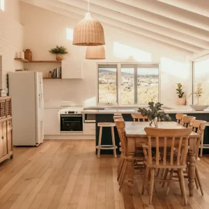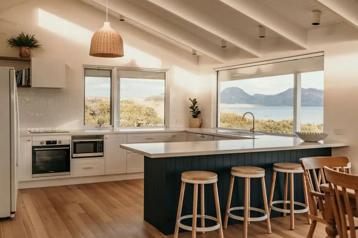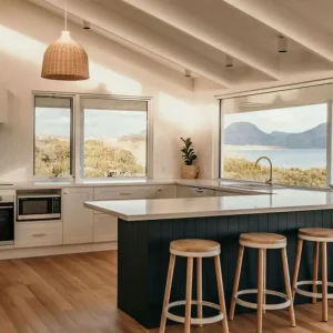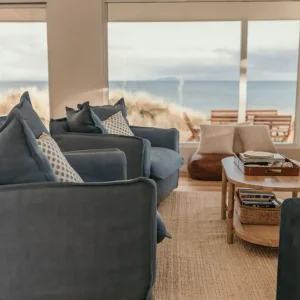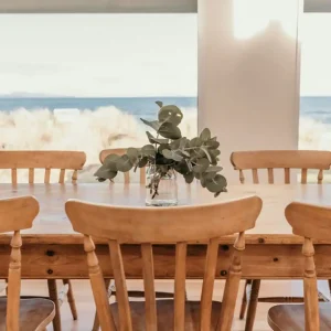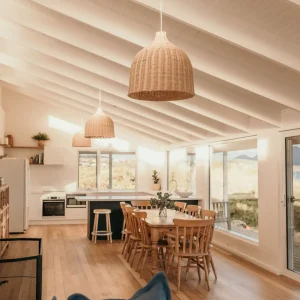 Saltair Freycinet is a beautifully appointed 3-bedroom 1-bathroom luxurious property which can sleep 7 guests. The property includes open plan living throughout the kitchen and lounge, with floor to ceiling windows that capture the beautiful views of the Freycinet Peninsula and Great Oyster Bay. The lounge has a beautiful woodfire that is just perfect for those winter nights or cool summer evenings after a day of exploring the beach off the front deck or the famous Freycinet National Park.