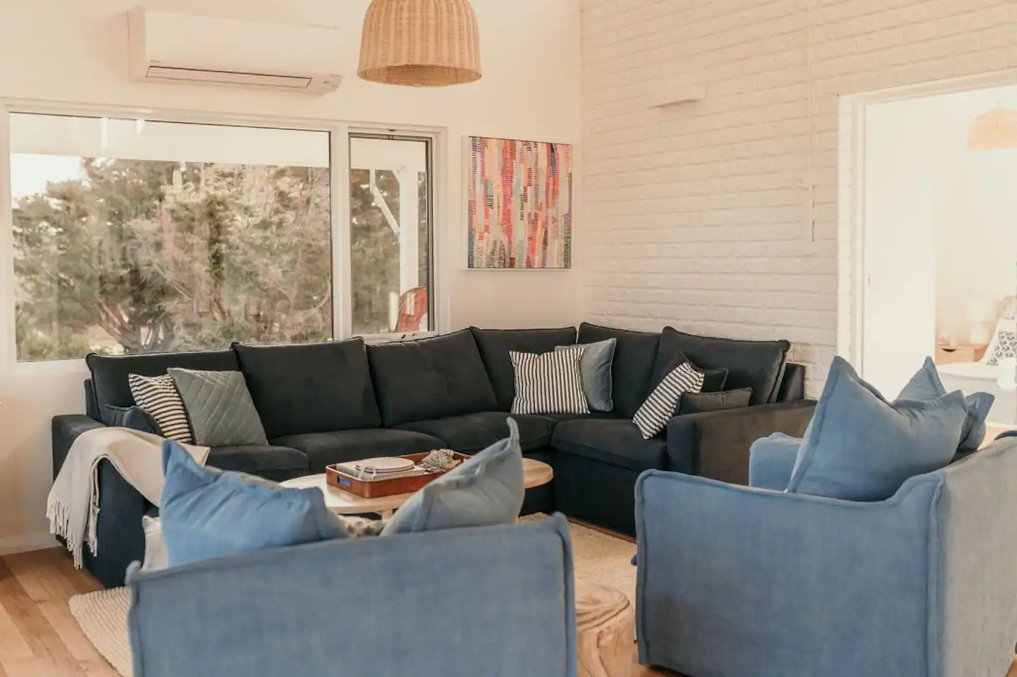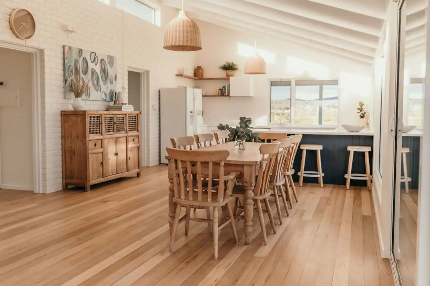 The property has been renovated and includes beautifully appointed cabinetry and kitchen appliances which will make entertaining guests with the famous local produce effortless. Both private bedrooms have gorgeous queen size beds with views of the ocean only a stones throw away. The third room has a double bed with a bunk for the kids or extra guests.