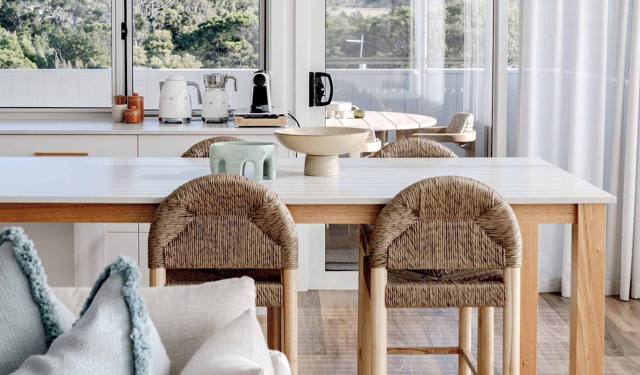 As you enter the upstairs you will notice how the spacious living room flows effortlessly into the kitchen with stunning views. From the kitchen you will be able to enjoy the undercover outside deck where you will be able to enjoy a wine matched with the regions local produce looking towards Diamond Island and Redbill Beach. The house is equipped with all of the latest kitchen appliances making entertaining effortless.