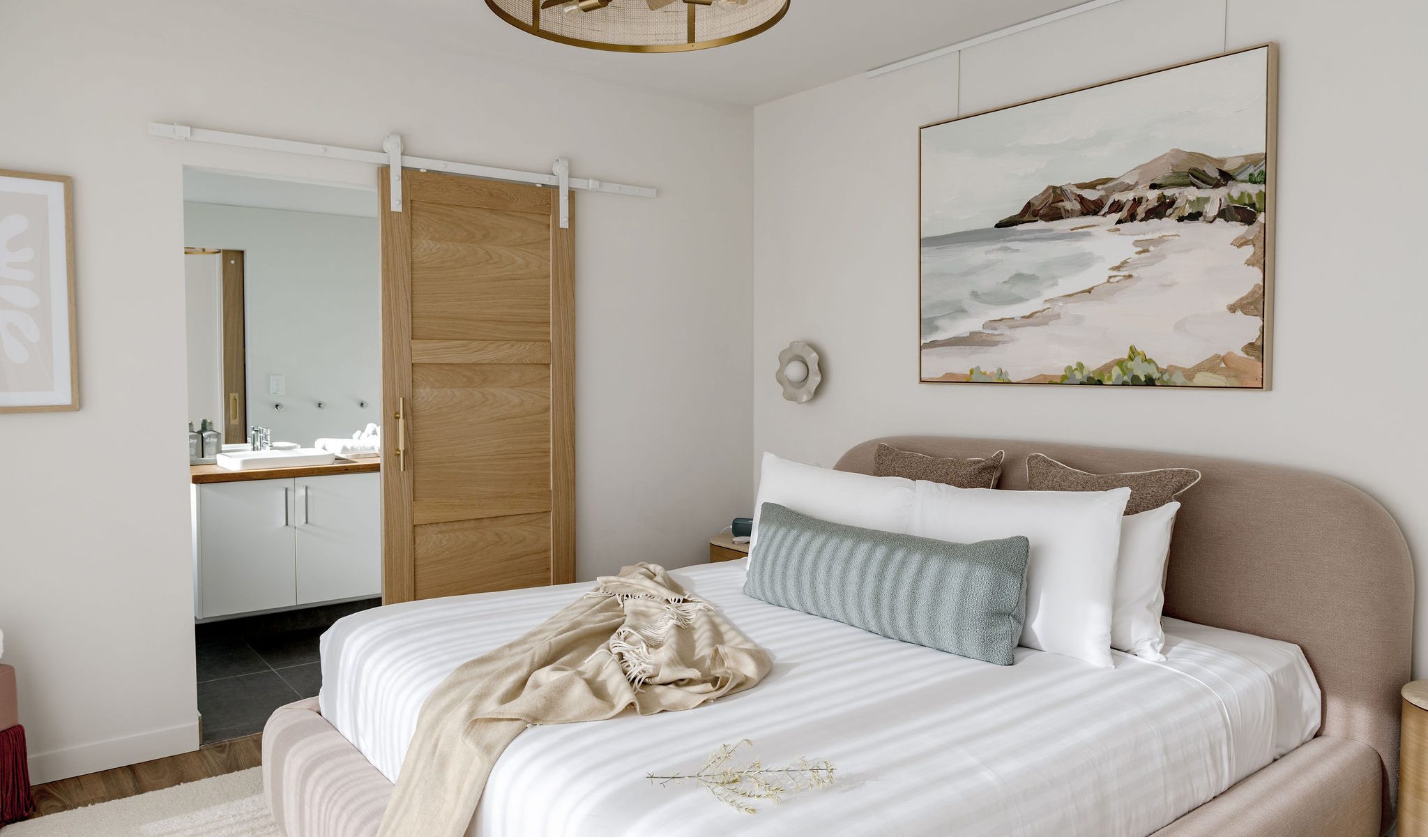 Furthermore, the entire house has been interior decorated and styled from top to bottom with no expense spared. Solara can sleep up to 4 guests in both comfort and style. The master bedroom is upstairs with its own ensuite facing north east so the morning sun will flood into the bedroom. The guest bedroom is downstairs upon entry into the house with its own lounge space and ensuite.