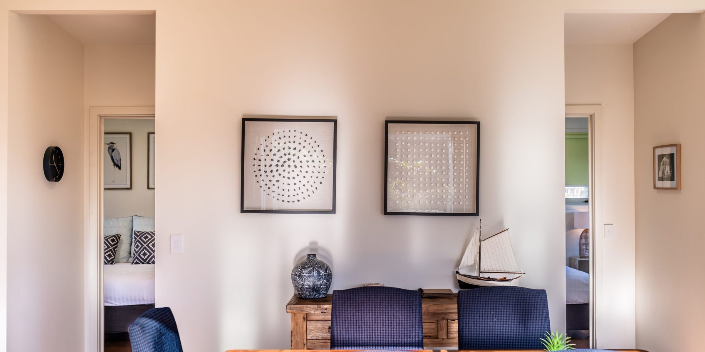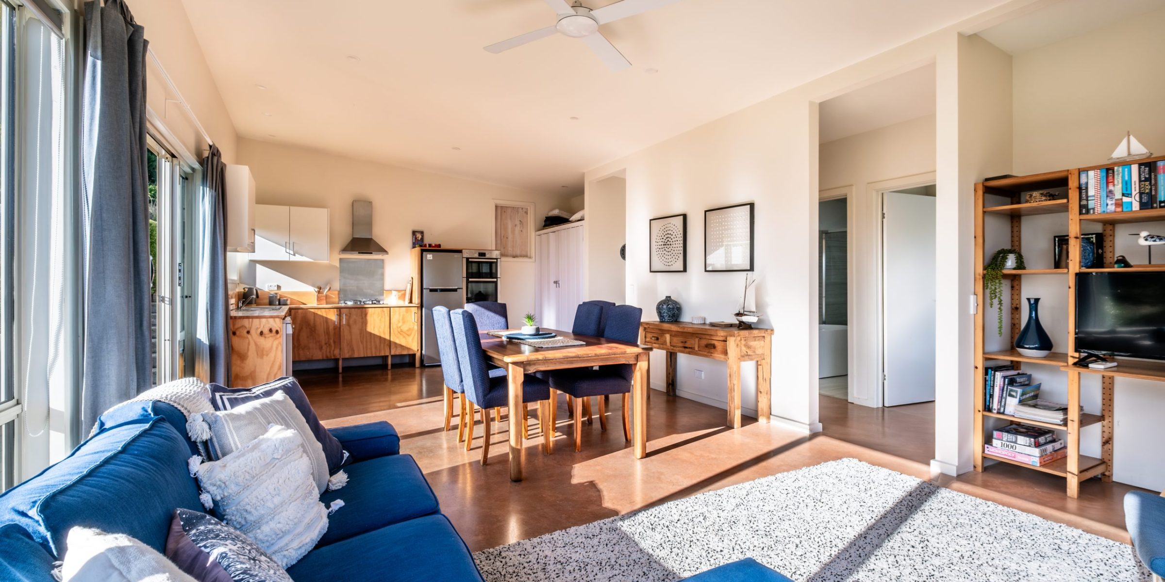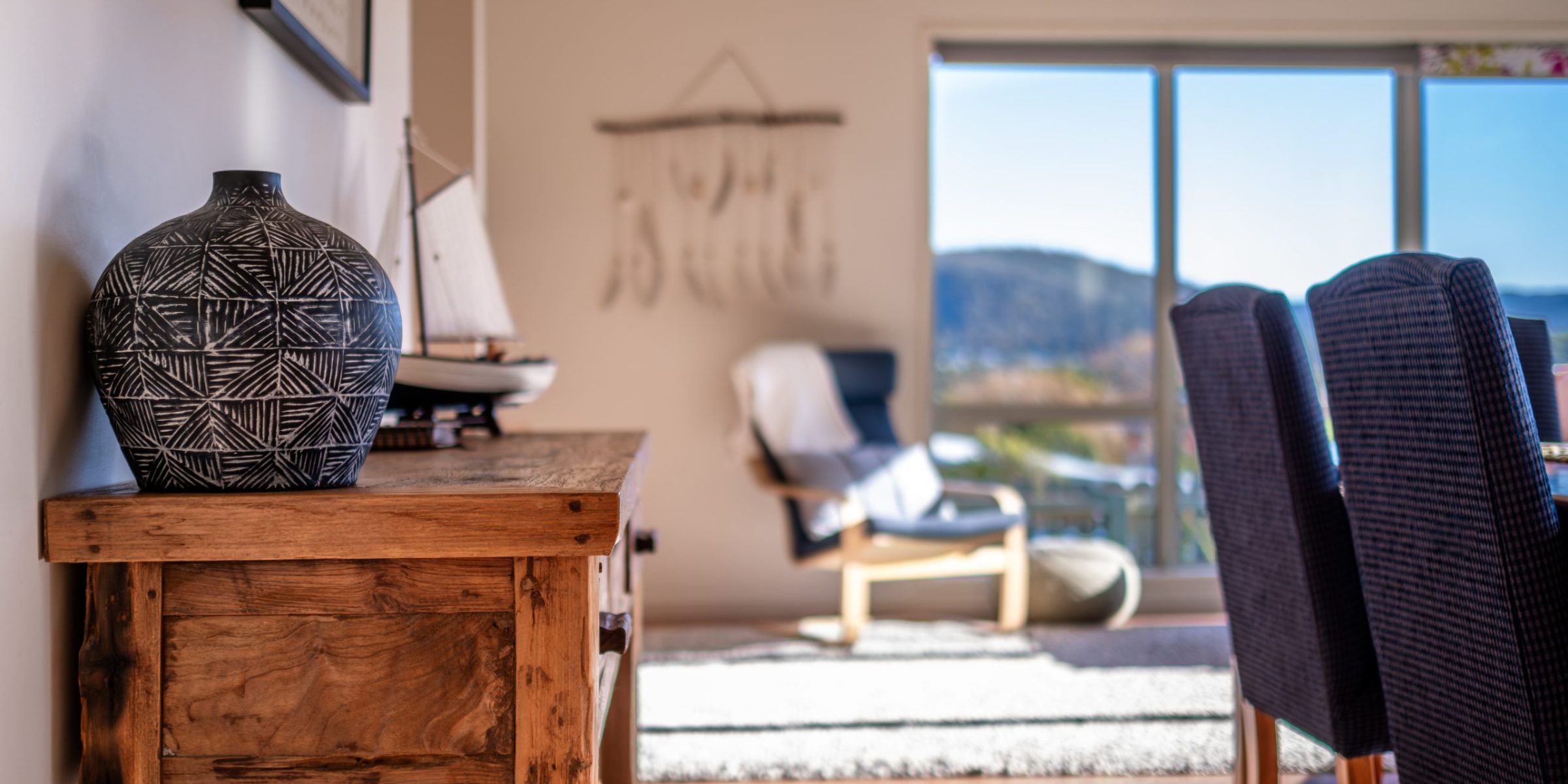 The property has all day sun and views of the stunning Waubs Bay. The Hill House is a beautifully appointed 2 bedroom property which has a large sun drenched kitchen and open plan dining area which makes entertaining family and guests a breeze. With peeks of a gorgeous sunset view over the water, this is the place to be!!