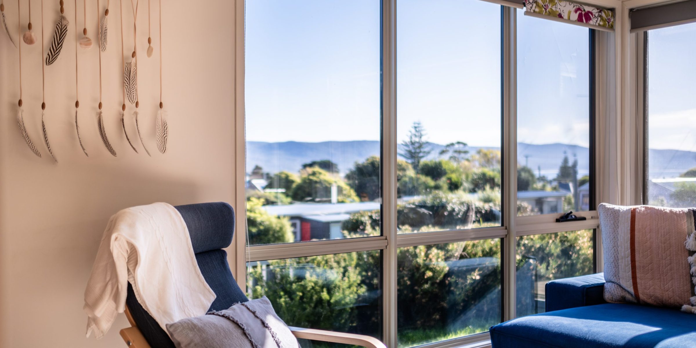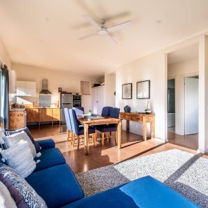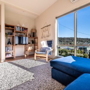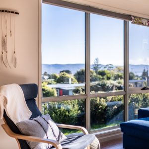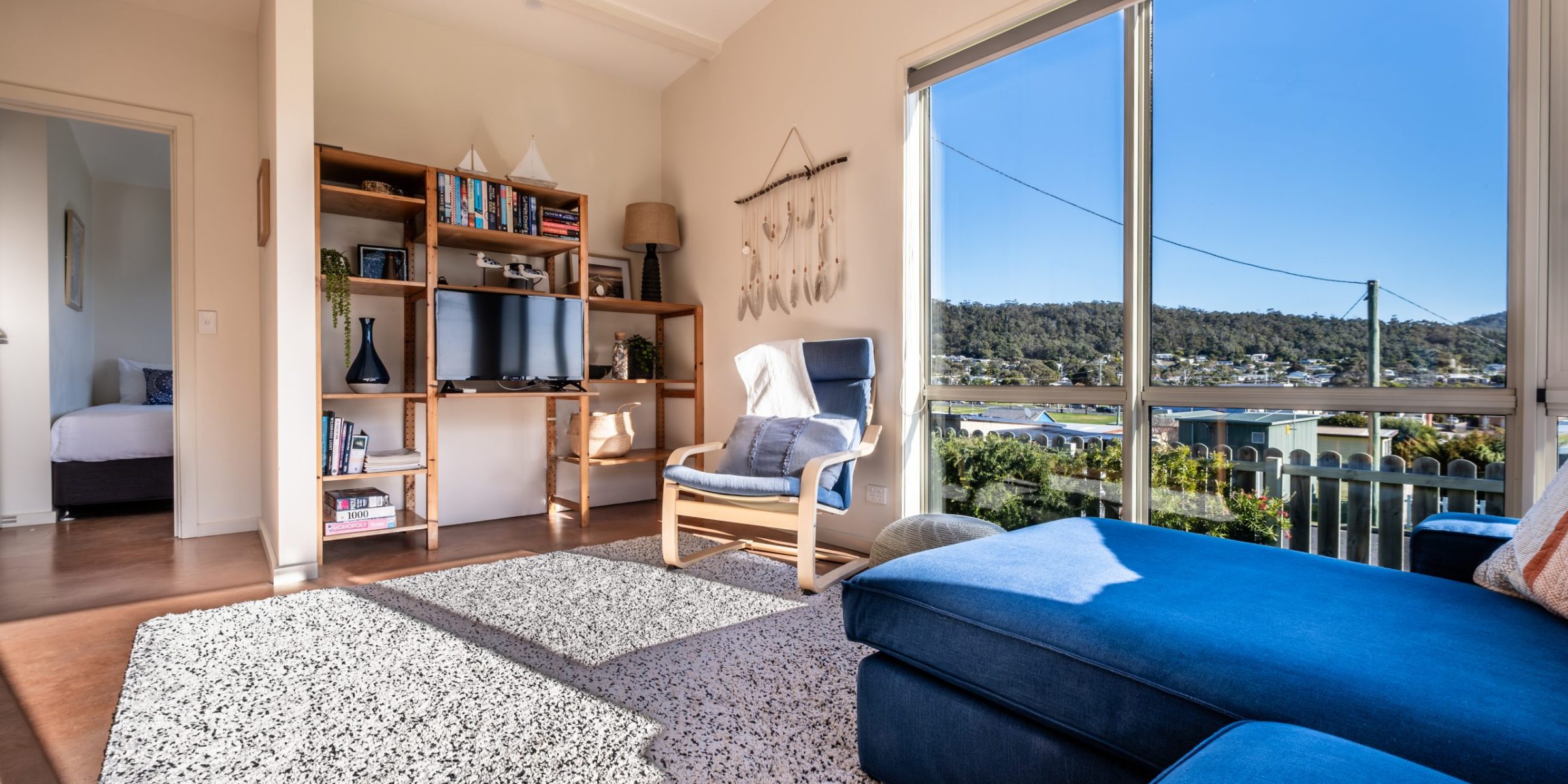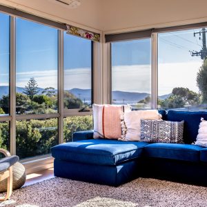This stunning property has 2 bedrooms with one queen and 2 single beds perfect for the kids or travelling companions. The beautifully finished bathroom has an extra-large bath to relax in after those long walks on Bicheno’s famous beaches and foreshore.