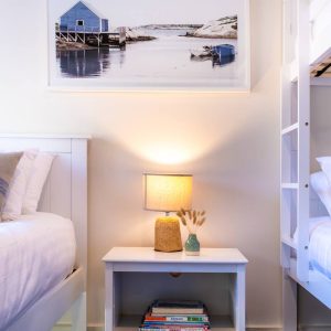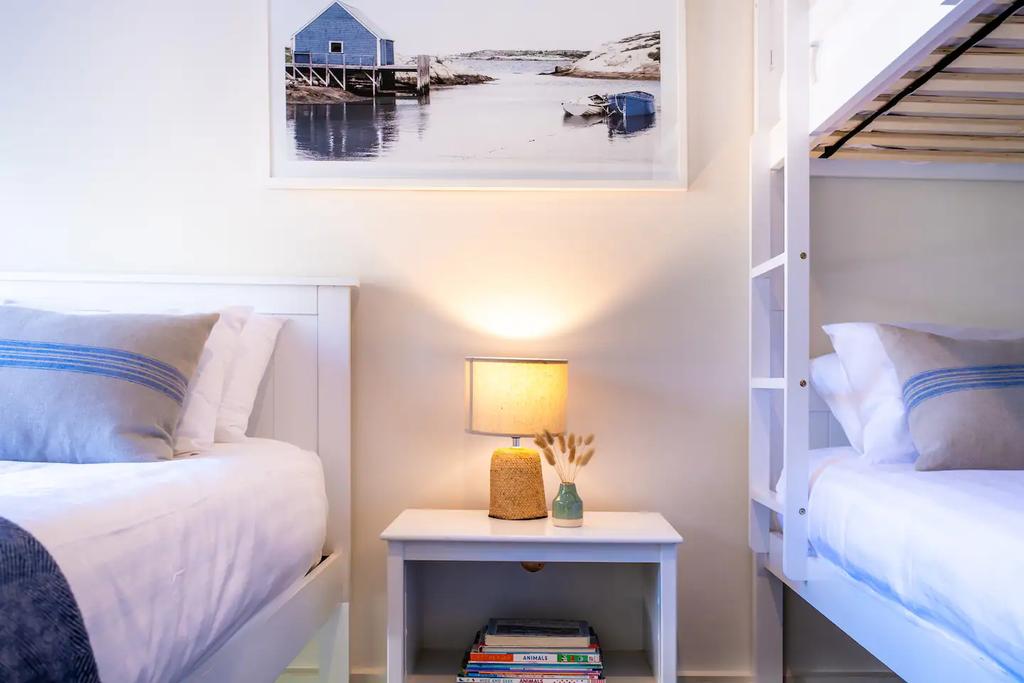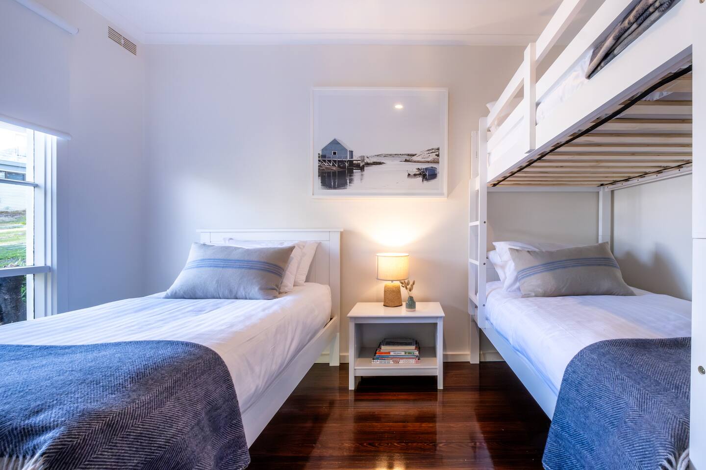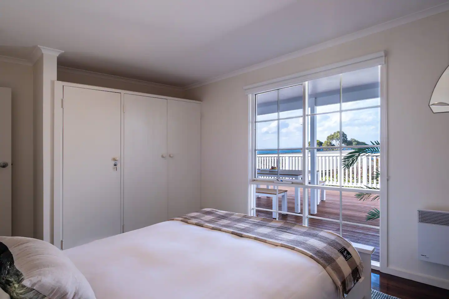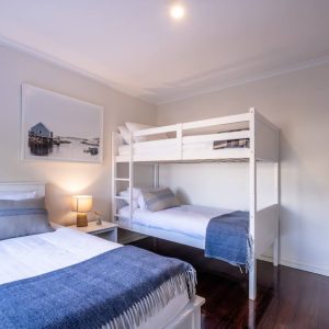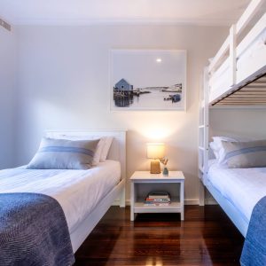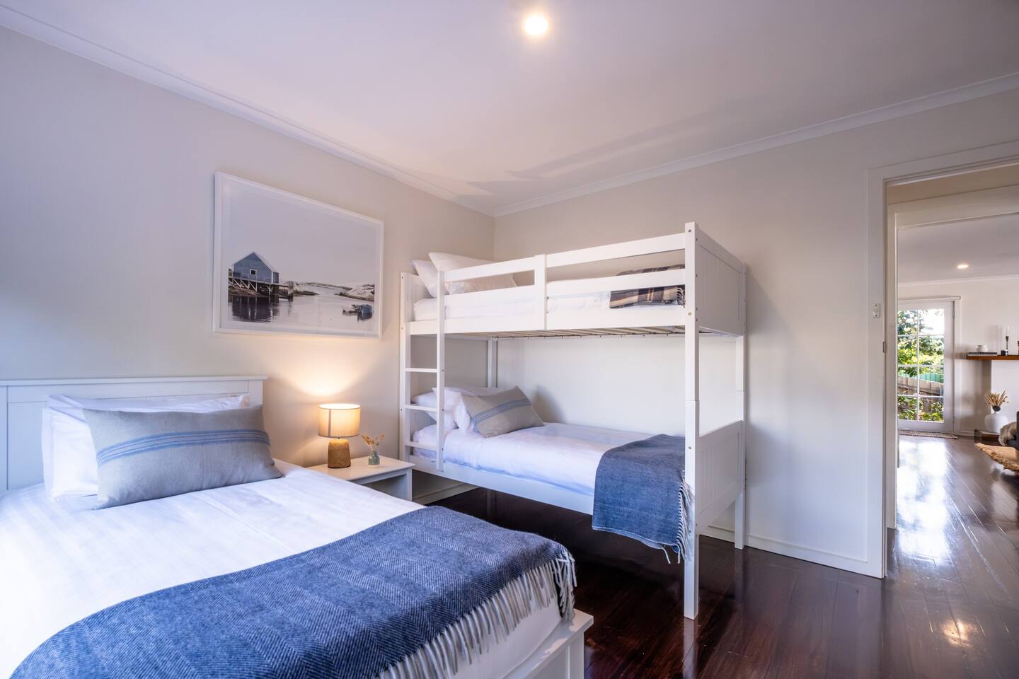 Just off the main lounge room you will find the master bedroom that is flooded with morning light at sunrise and also this space overlooks Waubs Bay. Down the hall you will find a single bed and a double bunk for those larger family or friend getaways.