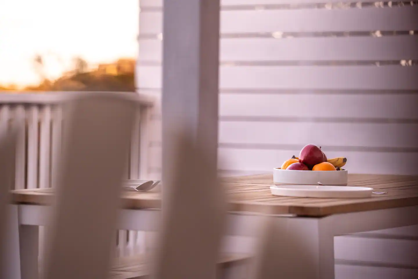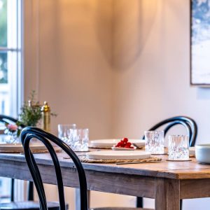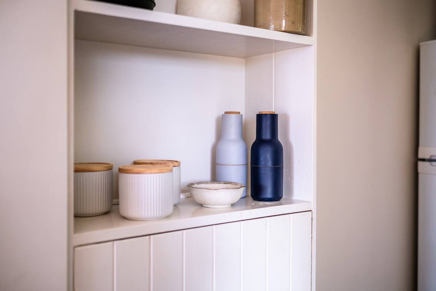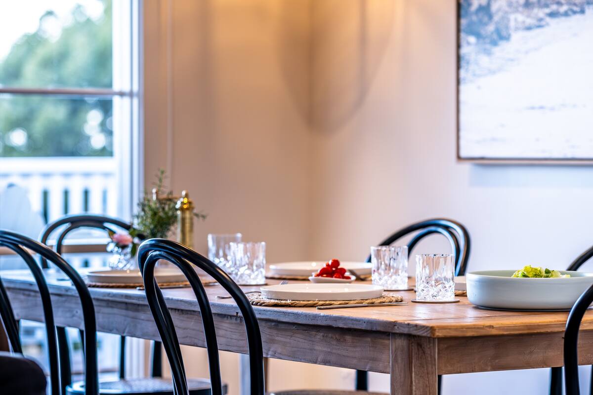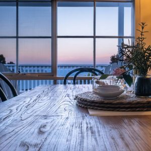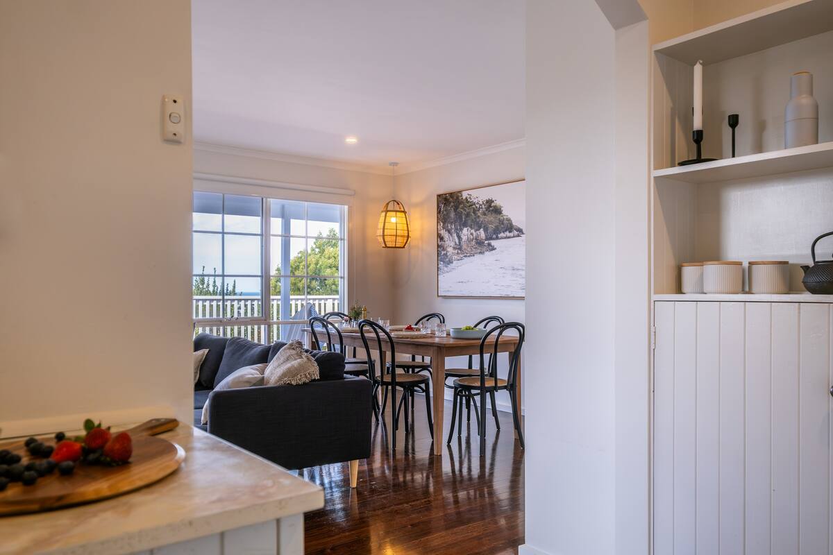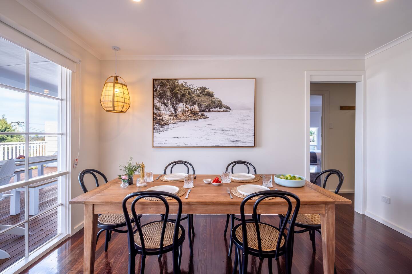 Upon entering The Shack you will notice the attention to detail with the styling and how beautifully cosy the open plan living dining space is. The lounge room flows out onto the sun-drenched deck through the bifold doors where you can enjoy cocktails and Bicheno’s famous local produce and wine. The large couch surrounds the living space which has gorgeous views to the famous Waubs beach. Relax at the dining table with a wine and produce from the local vineyards and seafood restaurants.