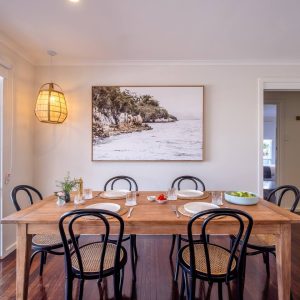 Out in the backyard you will find beautiful native trees to shade underneath in those hot summer evenings or to relax with a drink after a day exploring on Bicheno’s famous beaches. Within only a five minute walk you will find multiple beaches shops restaurants and also Bicheno’s famous fairy penguins if you are lucky.