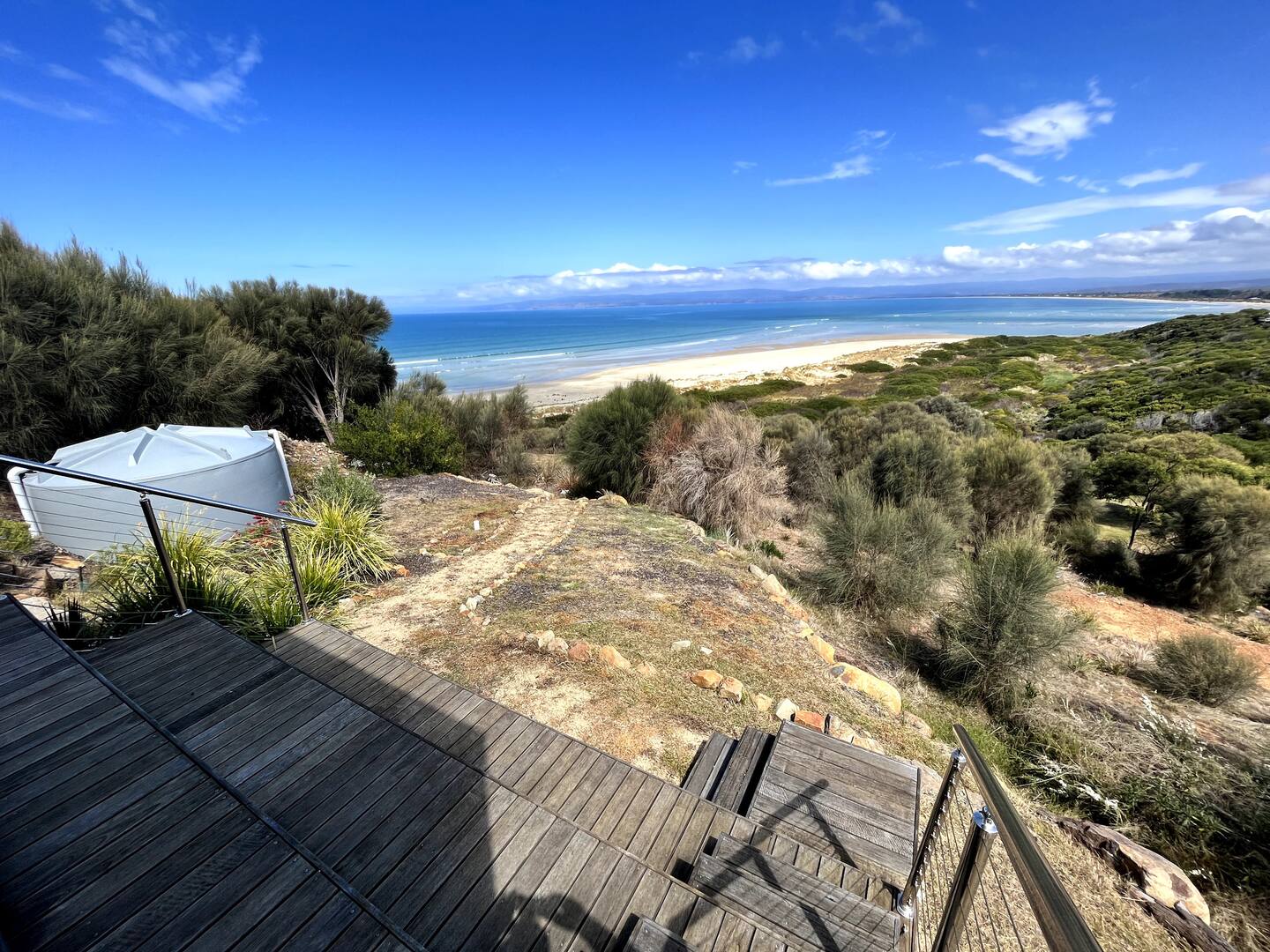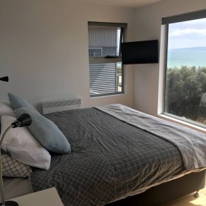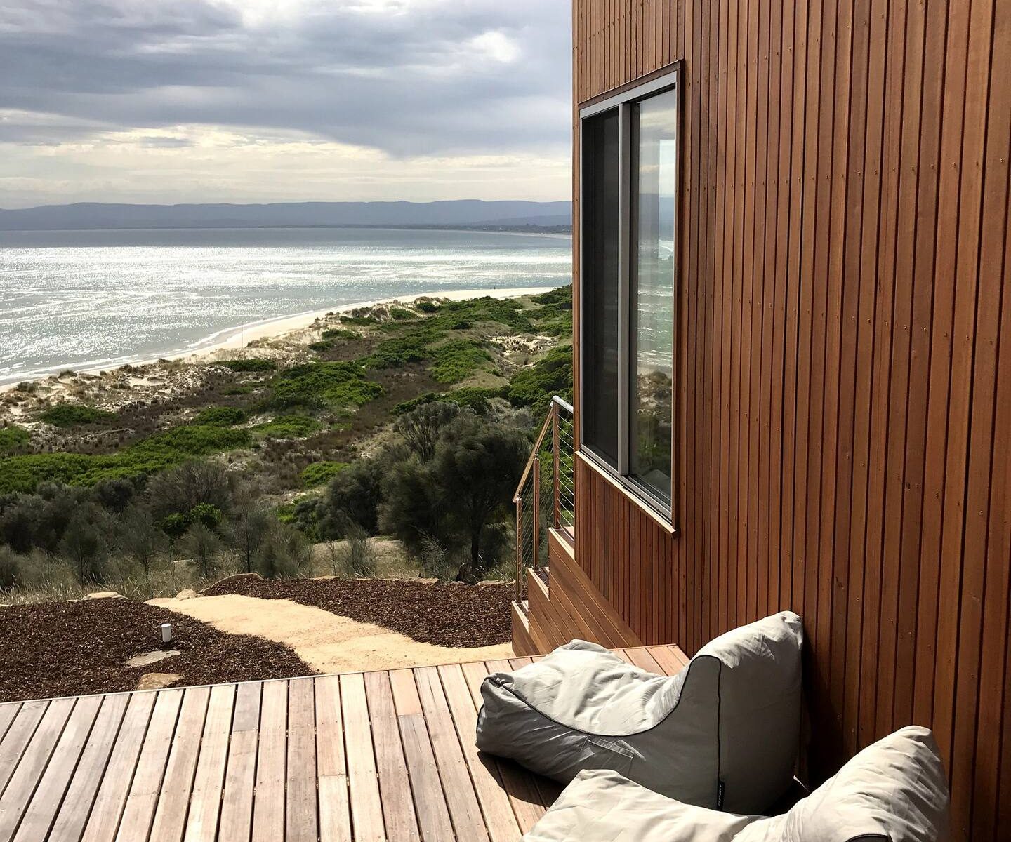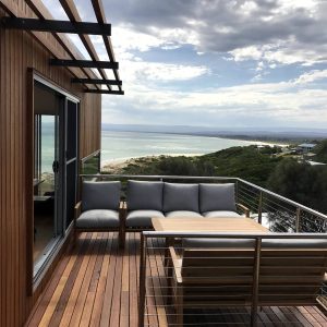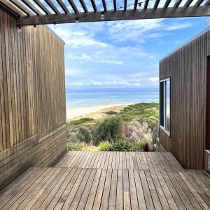 The first architecturally designed pod includes a fully equipped kitchen, dining & lounge room. All of these spaces have majestic views of the famous Sandpiper Beach and Great Oyster Bay. You can relax on the huge couch that overlooks the water or enjoy some of the local wines on either of the three decks.